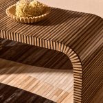The Bellonda coffee table with striped bamboo inlay, adding an organic touch to living spaces with its sculptural, natural-toned look. Coffee Tables, Wholesale coffee table, coffee tables for sale, coffee tables Uk Every detail has been carefully considered to invite relaxation and elevate your interior with effortless sophistication.