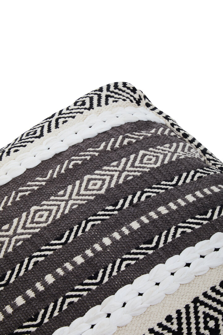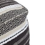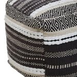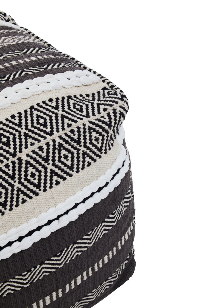 The Circolo pouffe upholstered in grey and white pattern cotton has a modern boho aesthetic. Cefena-Pouffe-Grey-White-Pattern-Fabric-Mangoo-Wood-Cotton-Home-Functional-Durable-Living-Seating-Bedroom-Accessories-Furniture-Textile-Sturdy-Contemporary-Comfortable-Backrest-Foam-Cushion-Modern-Design Every detail has been carefully considered to invite relaxation and elevate your interior with effortless sophistication.