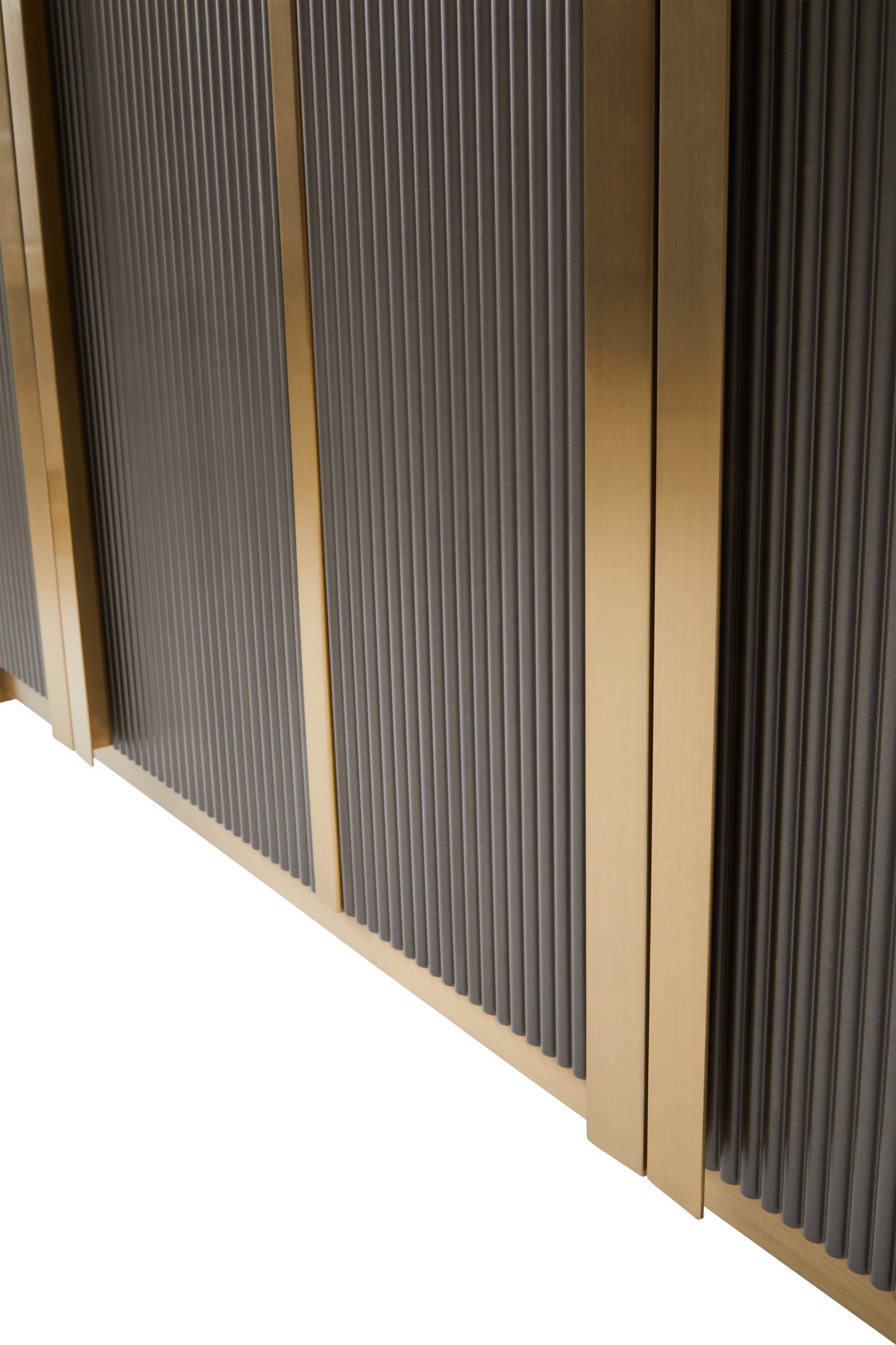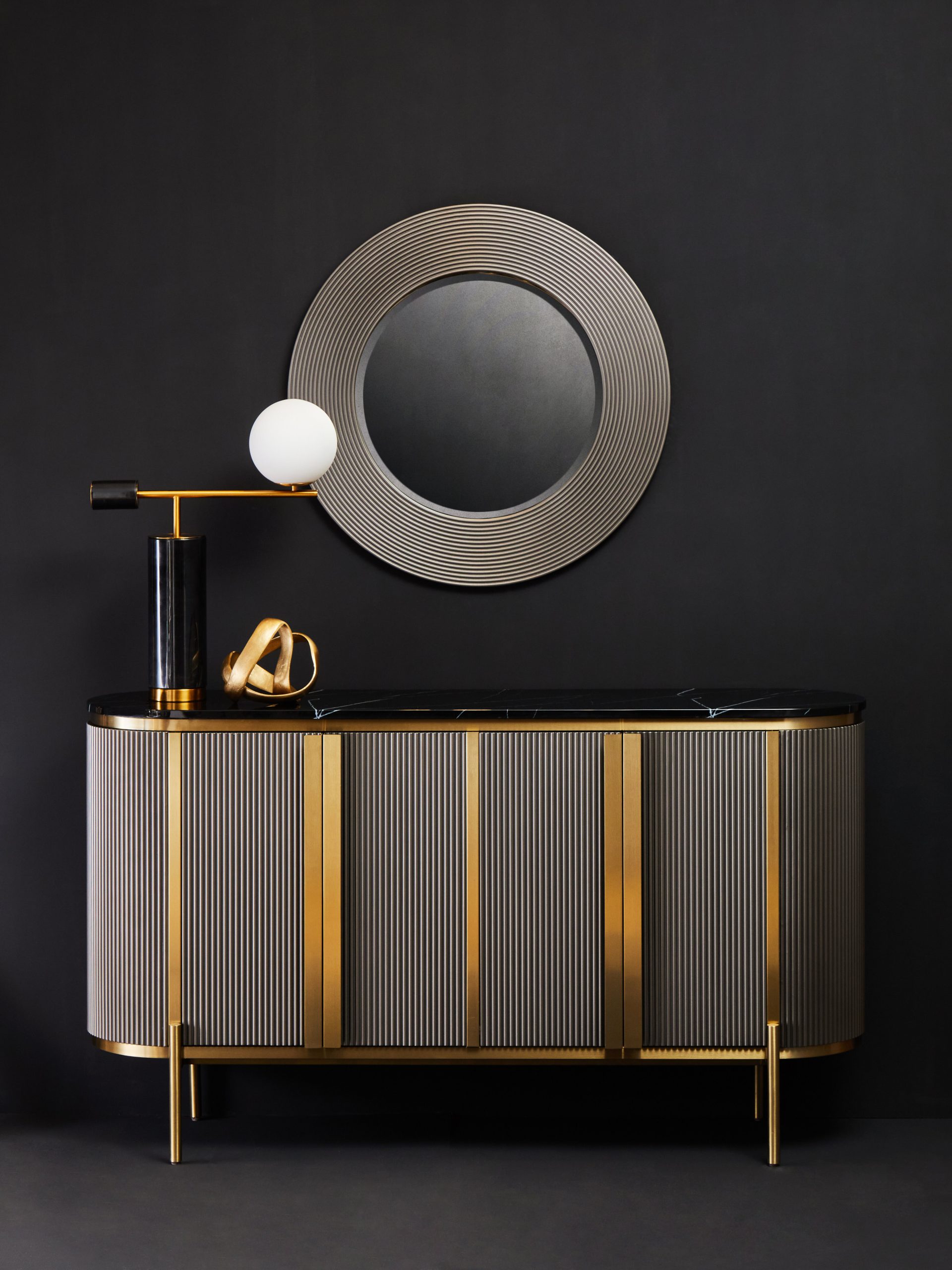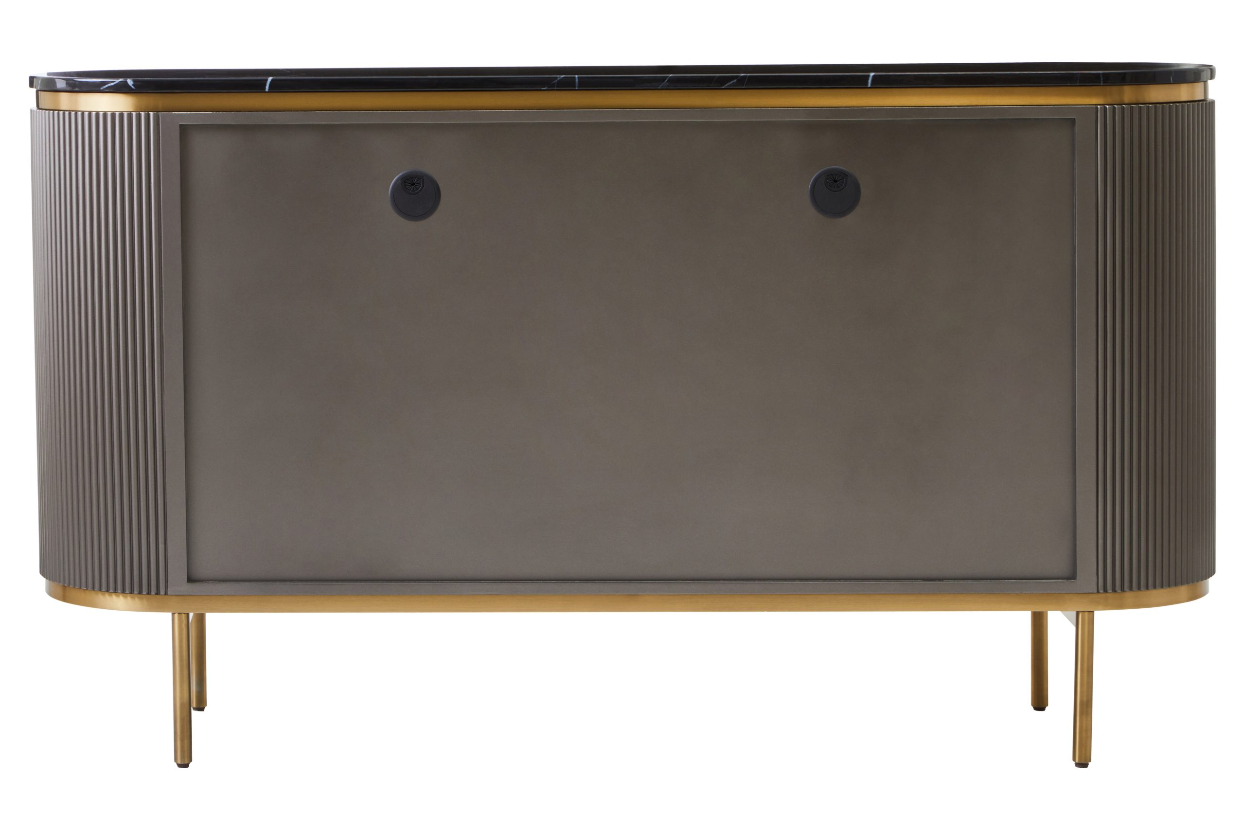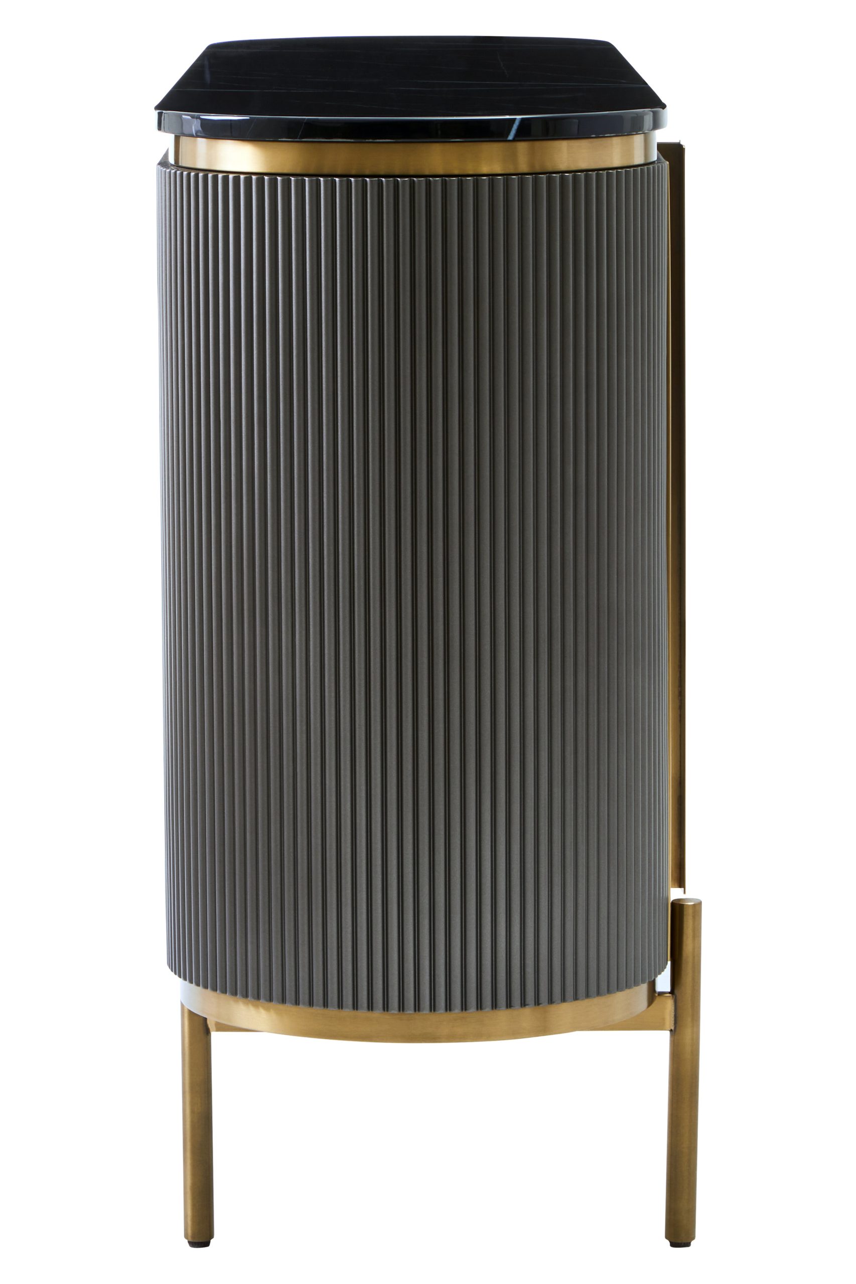 The Duvaria Grey Four Door Sideboard With Black Marble Top is the epitome of indulgent living.