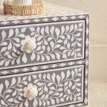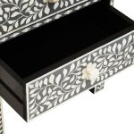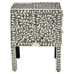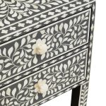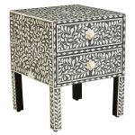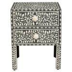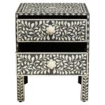 The Fusione di Perla 2 Drawer Side Table with Bone Inlay is the epitome of indulgent living.