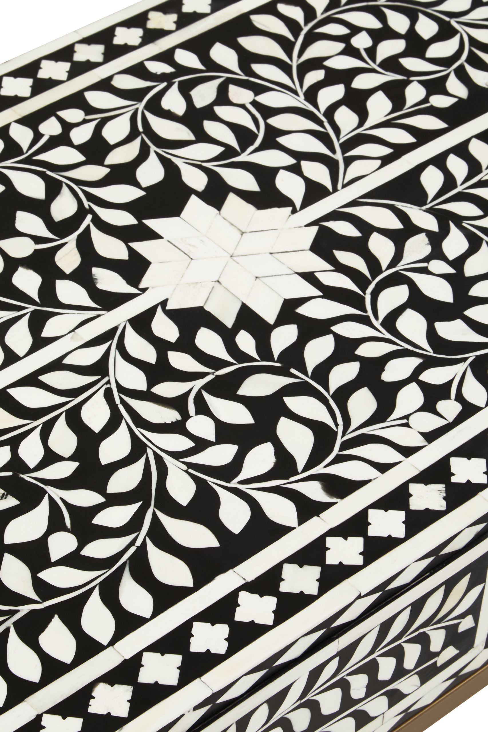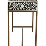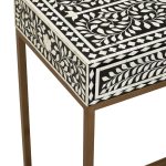 This console table with white bone fragments adhered to black finish and a minimalist base will make a provocative statement to eclectic or boho decors. Wholesale products,Wholesale items,Trade wholesaler,Accessories wholesaler,Wholesale home goods,Home and Living wholesale distributors,Online wholesale,Wholesale furniture,Wholesale tables,Wholesale console tables Every detail has been carefully considered to invite relaxation and elevate your interior with effortless sophistication.