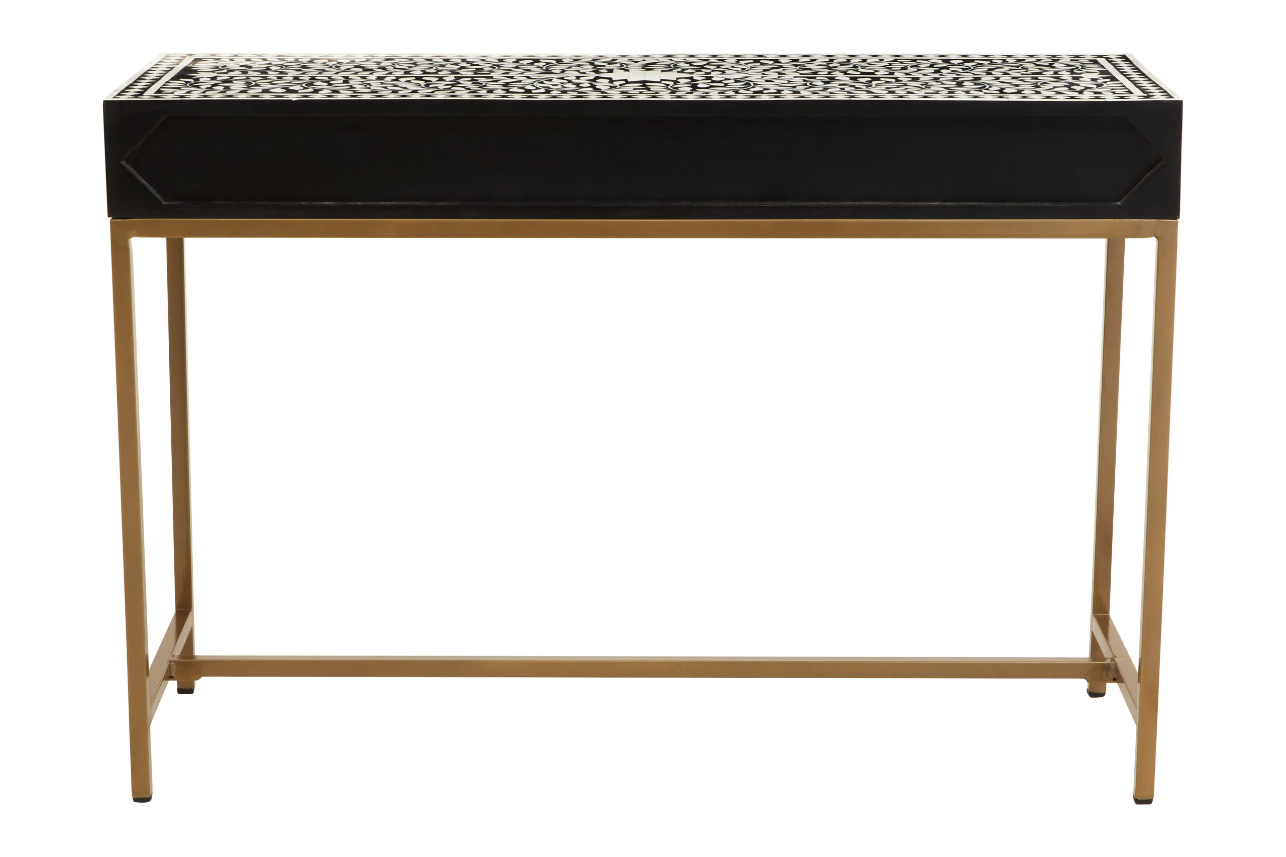 The Fusione di Perla Bone Inlay Console Table With 2 Drawers is the epitome of indulgent living.