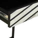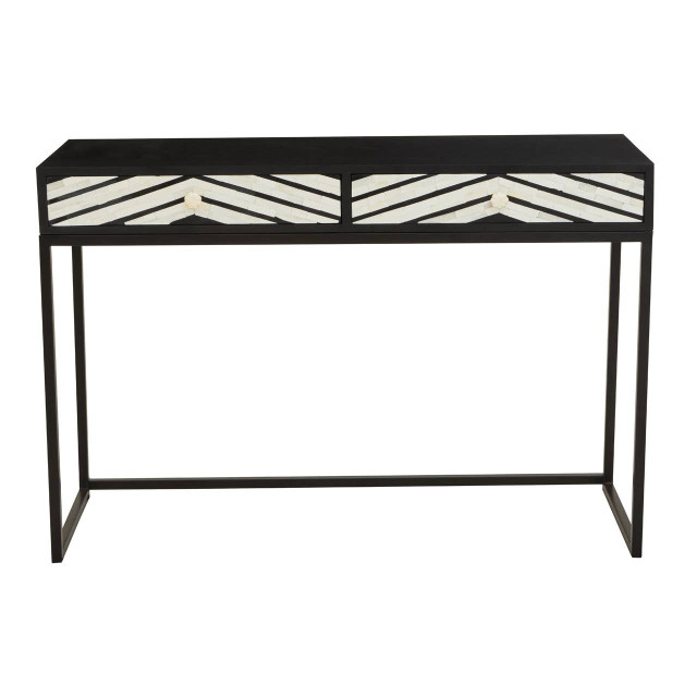 This two drawer console table in exquisite white bone inlay detail on black finish creates a distinctive statement piece in a monochromatic effect. Wholesale products,Wholesale items,Trade wholesaler,Accessories wholesaler,Wholesale home goods,Home and Living wholesale distributors,Online wholesale,Wholesale furniture,Wholesale tables,Wholesale side tables Every detail has been carefully considered to invite relaxation and elevate your interior with effortless sophistication.