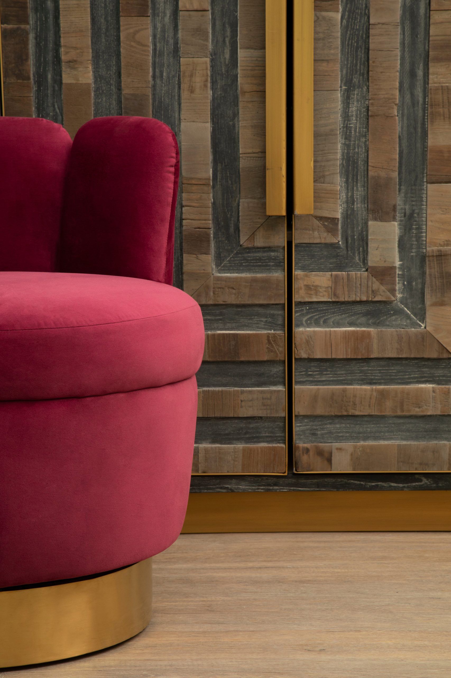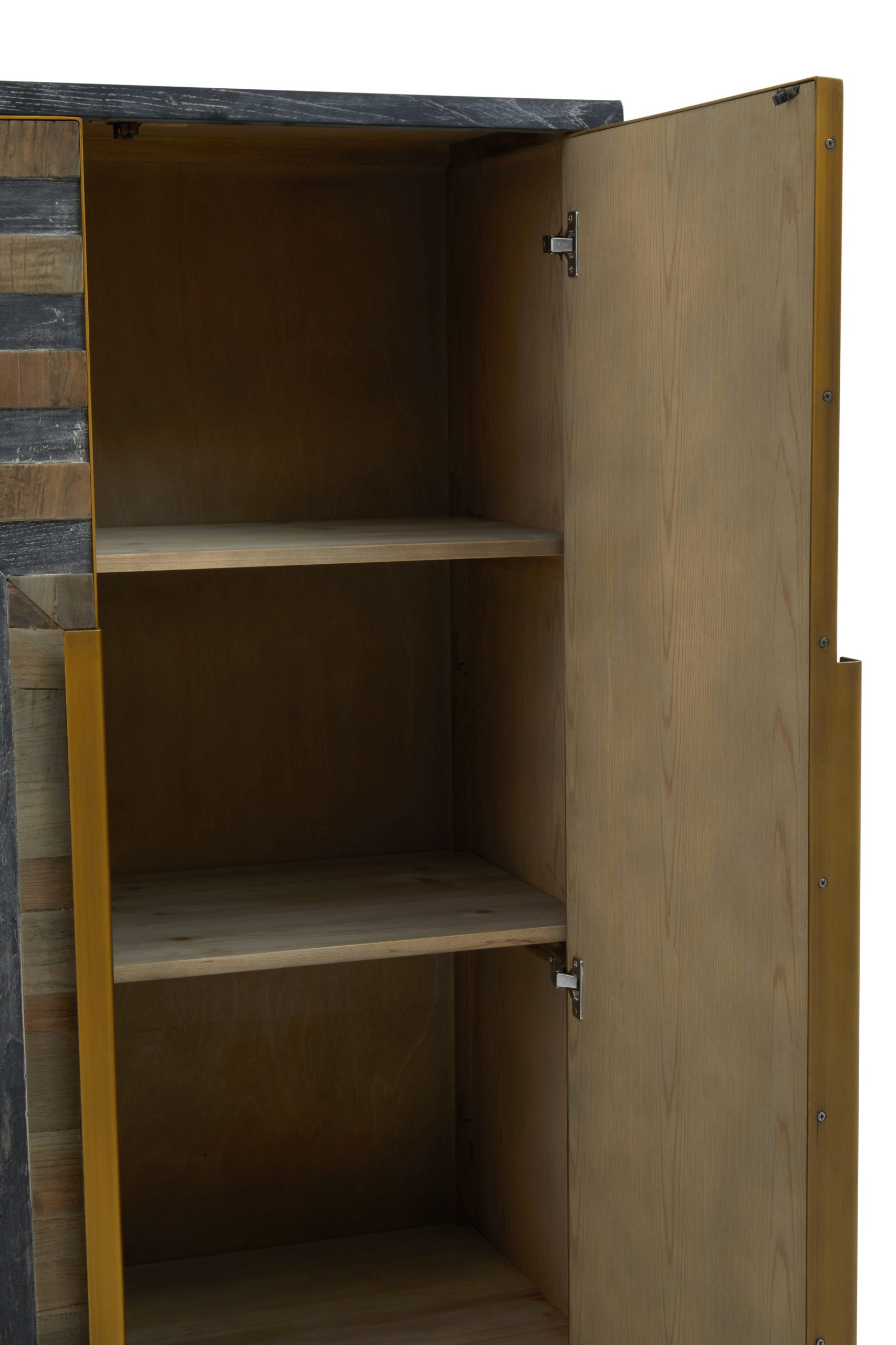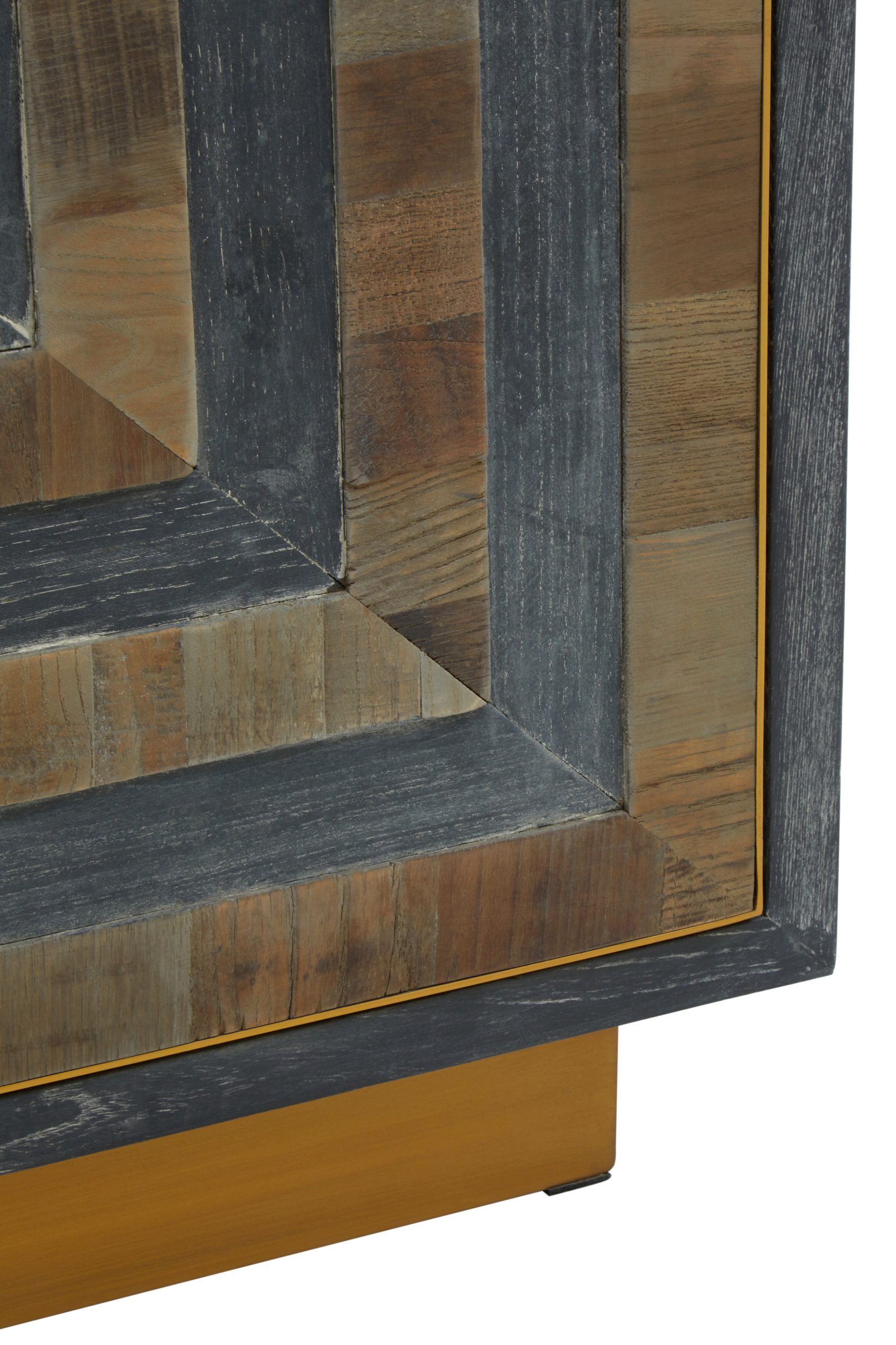 The Renata Recycled Elm Wood Cabinet With Brass Finish Base is the epitome of indulgent living.