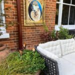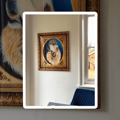 Meet our resident handsome boy Carlos?by Ellie Payne. ?The beautiful goldie was named after after a pilgrim on the Santigo de Compostela (The Camino). ?Like most golden retrievers he was a ?gentle and kind soul. Completely selfless and the content of his life on his back – he entertained with the most magical stories. ?The original piece is oil on canvas.